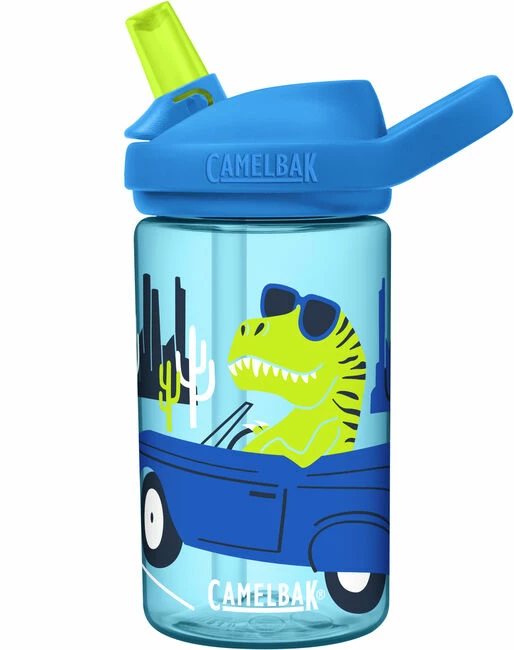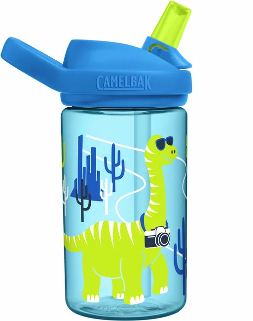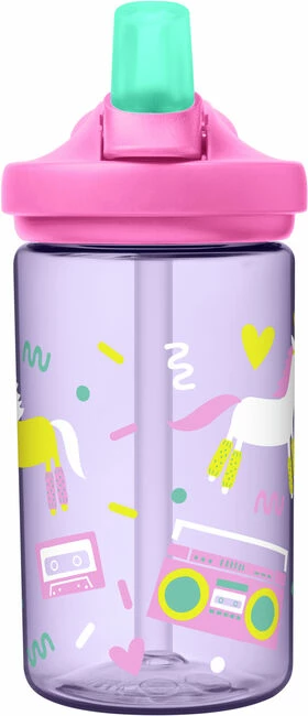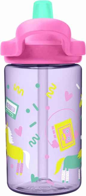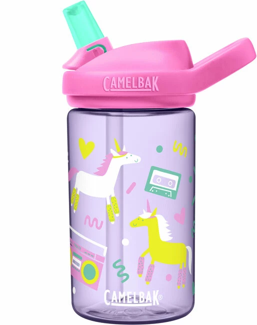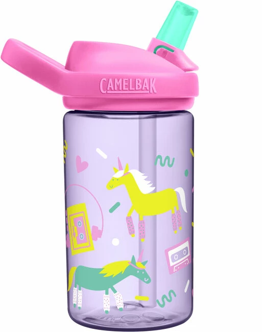 Sip sip hooray! The Camelbak Eddy + Kids 14oz Hydration Bottle has fresh pop colors and new graphics that pull kids back in for extra sips and sustained hydration. The Camelbak Eddy + Kids 14oz Hydration Bottle are constructed with new earth-friendly plastic that is made with 50% recycled material. It’s easy to clean and always free of BPA, BPS, and BPF. The soft and secure bite valve delivers a steady flow with a simple flip, bite, and sip. The comfy carry handle makes it easy to bring along virtually everywhere. Here’s to happy and hydrated kids (and equally happy parents). Recommended for ages 3+.