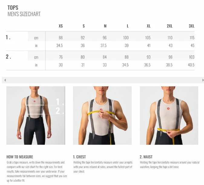 - Back fabric is Castelli’s Velocity mesh for breathability, yet it blocks 94% of UV rays for significant sun protection (UPF 16)