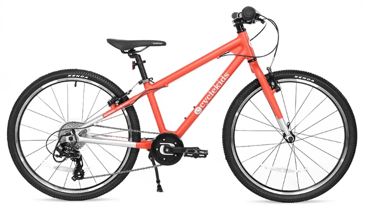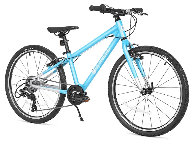 Built for exploring, the Cycle Kids 24β Kid’s bike is perfect for ultimate adventures. The Cycle Kids 24″ Kid’s bike is built with Cycle Kids’ signature lightweight aluminum frame and fork, 8 speed Shimano Twist Shifters and 28 hole double wall alloy rims. Weighing only 21.46 pounds, it is one of the lightest bikes in the market.Β Get ready for endless hours of exploring!