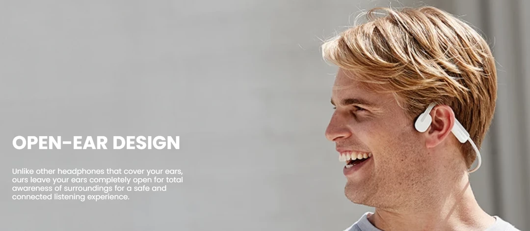 - Open-Ear Comfort – Inspired by athletes, designed for everyone. Our open-ear design powered by bone conduction technology allows for total awareness of surroundings and bud-free, comfortable listening.