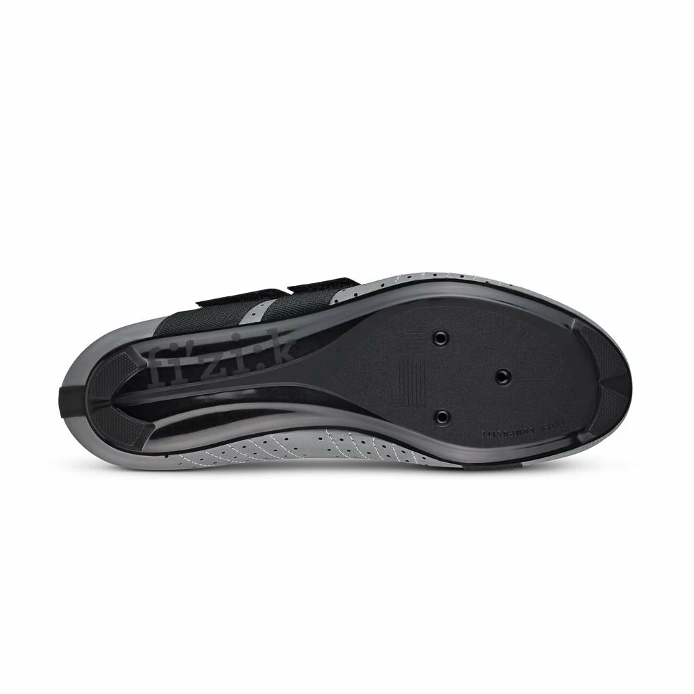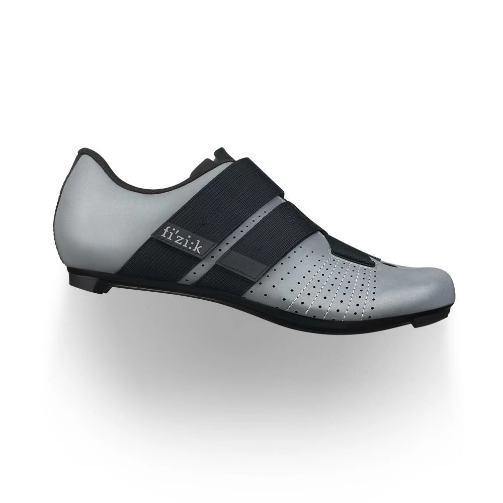 The Fizik Tempo Powerstrap R5 Reflective road cycling bike shoe with reflective microtex upperΒ provides you great visibility on the road, an innovative velcro closure system for an enveloping fit and an R5 nylon composite outsole.