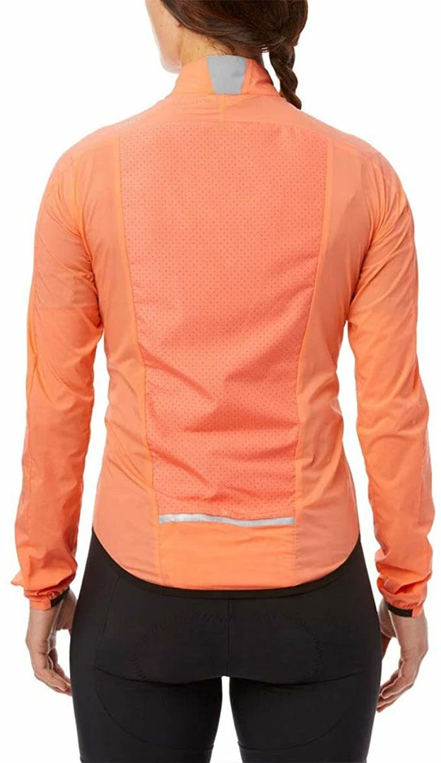 - Fabric – Main body: 100% nylon. Back panel: 100% polyester. Lightweight, windproof main material with 2-way stretch, UPF 50+. Durable Water Repellent (DWR) coating. Durable ripstop fabric, Perforated back ventilation, Gathered elastic hem and sleeve opening, Soft chin guard over top zipper. 3Mยฎ Reflective logos and highlights