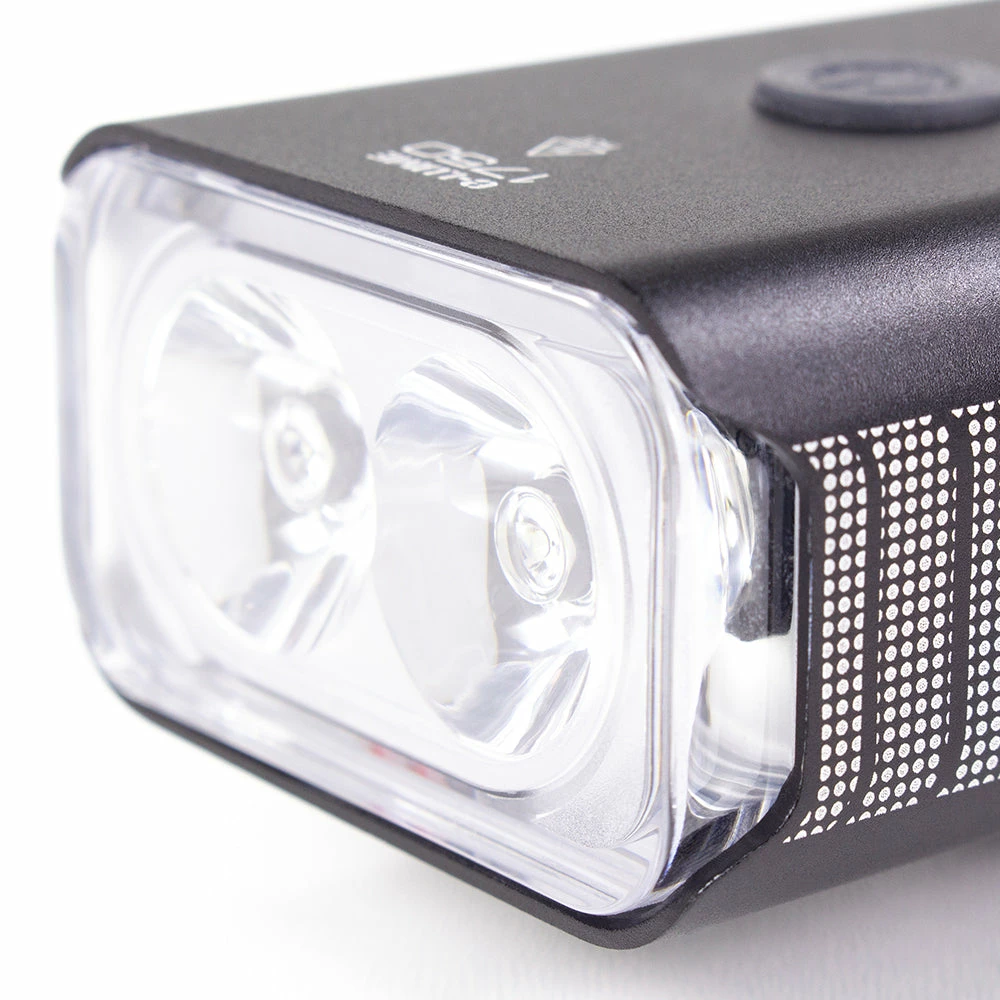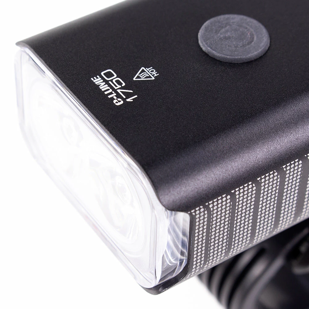 Light output of the Serfas E-Lume 1750 is sent through dual optical lenses creating a broad powerful beam with strong front illumination and excellent side visibility.