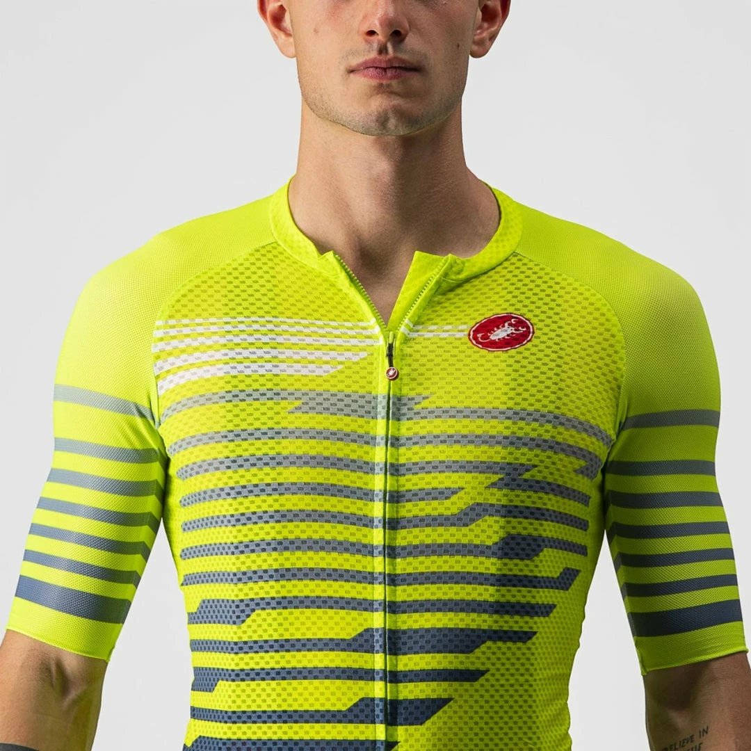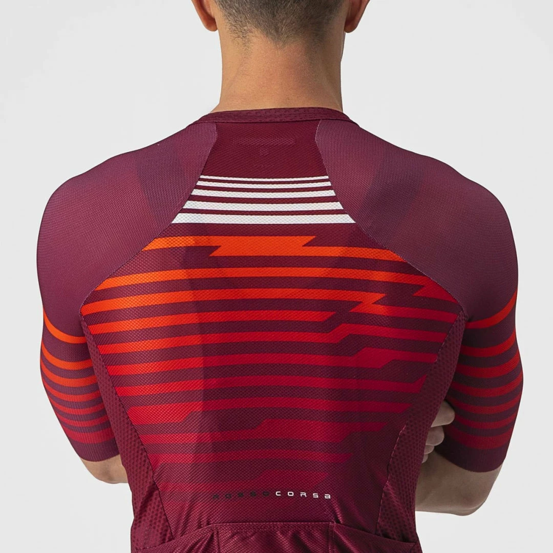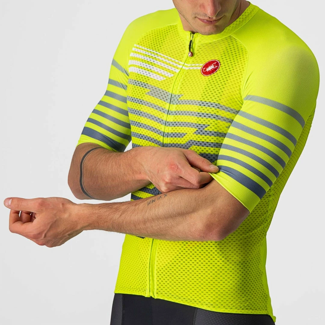 The Castelli Climber’s 3.0 Full-Zip Short Sleeve Cycling Jersey was created for the hottest days. The Castelli Climber’s 3.0 Full-Zip Short Sleeve Cycling Jersey allows ample airflow, is quick to dry and blocks more than 90% of UV rays on your back. A great choice for your long summer rides, or add a base layer and it’s a three-season jersey.