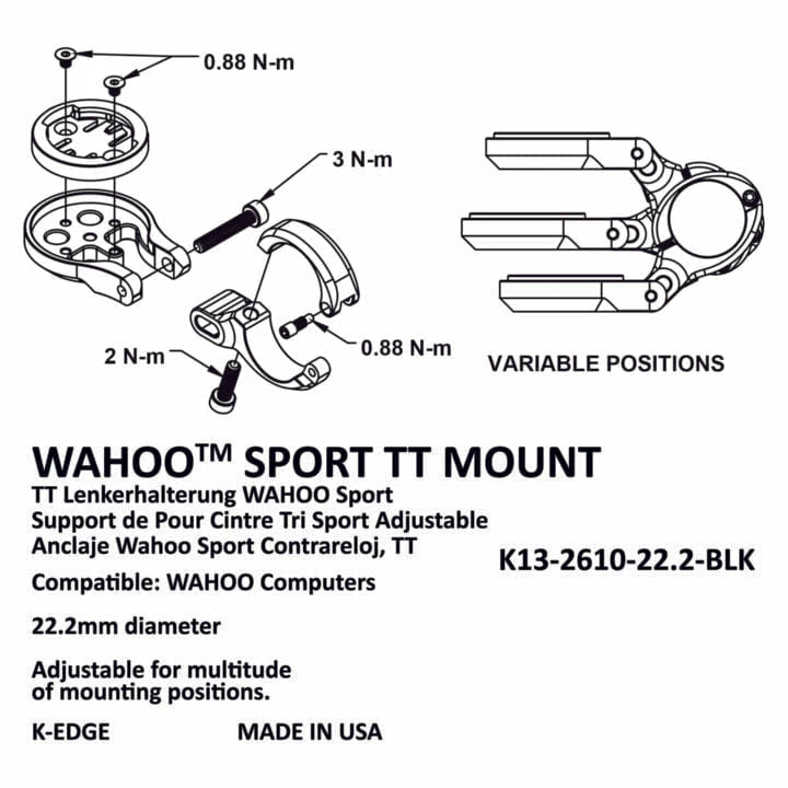 The K-Edge Wahoo Elemnt Sport TT Mount is a simple, lightweight and versatile mount for positioning the Wahoo ELEMNT between the aero bars.ย Single bolt clamp and pivoting mount design.