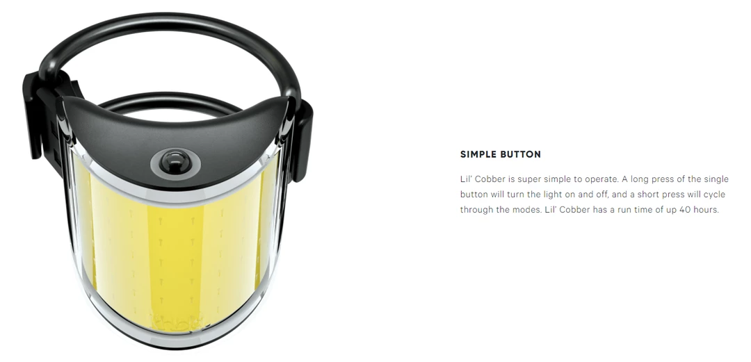 - Simple Button – The Knog Lilβ Cobber twinpack is super simple to operate. A long press of the single button will turn the light on and off, and a short press will cycle through the modes. The Knog Lilβ Cobber twinpack has a run time of up 40 hours.