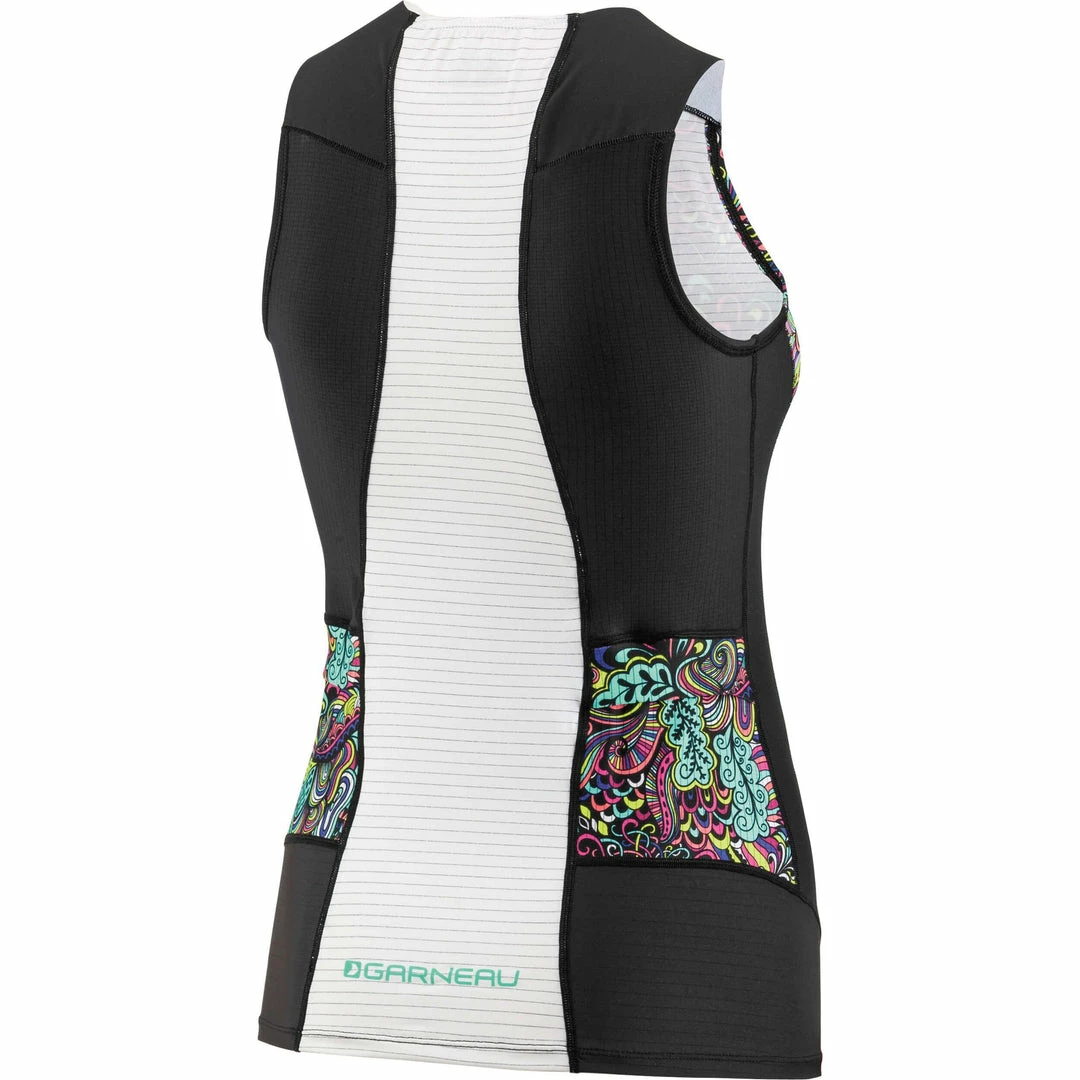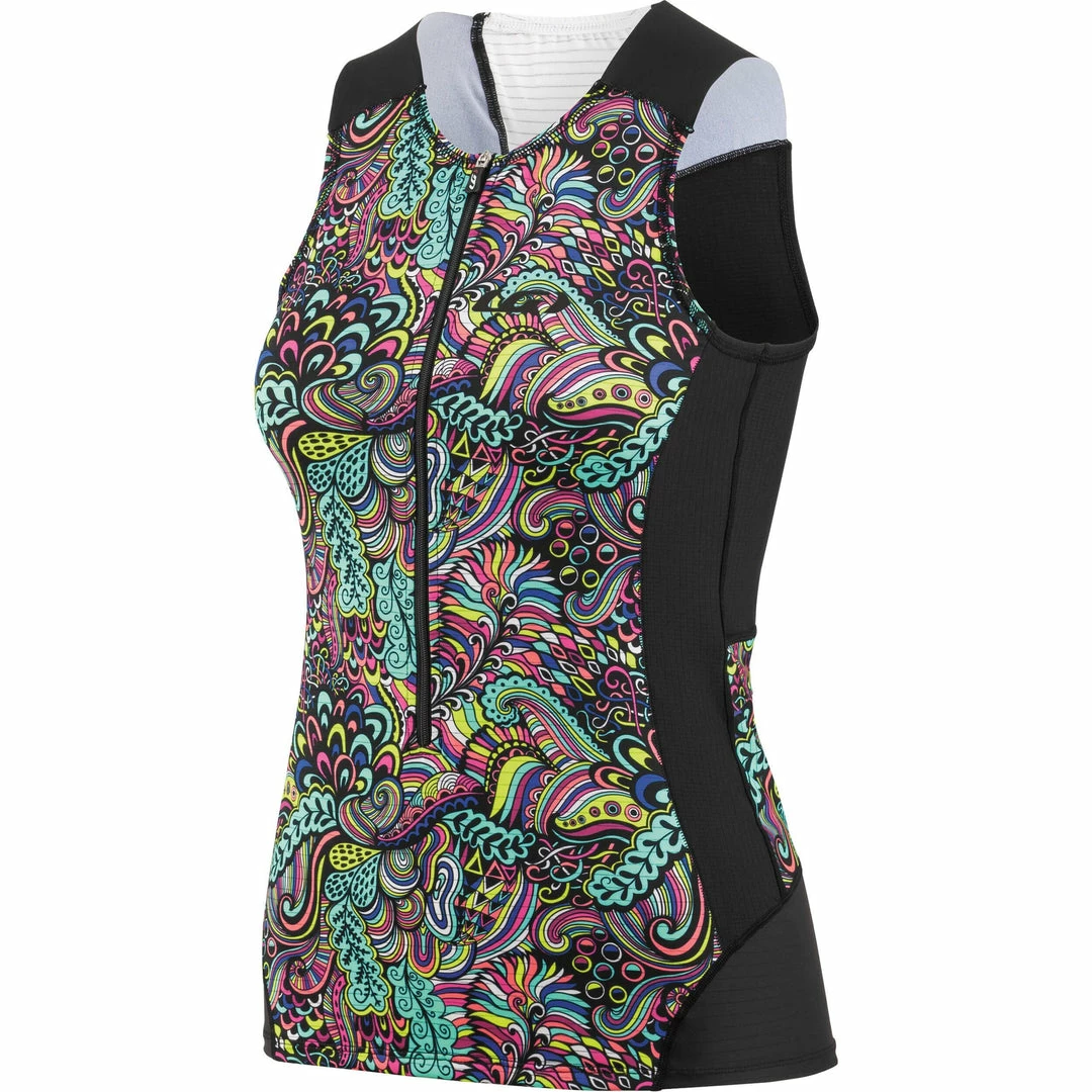 The Louis Garneau Women’s Pro Carbon Sleeveless Triathlon Top provides you with an excellent range of motion and great warm-weather performance. The lightweight and breezy sleeveless cut allows you to stay well ventilated when you’re working hard, with moisture-wicking and breathable materials adding to the cooling effect. Advanced Coldblack® technology works to dispel heat build-up caused by UV rays – even on darker-coloured fabrics. The tapered waist gives the top a flattering shape, while the laser-cut shoulders improve the overall aerodynamics – for an easy path through the air. The combination of Micro-Activ and flatlock seams eliminates irritation and reduces chafing. Reflective accents on the front and back help improve visibility in low-light conditions, while the fabric also provides sun protection up to UPF/SPF 50.
