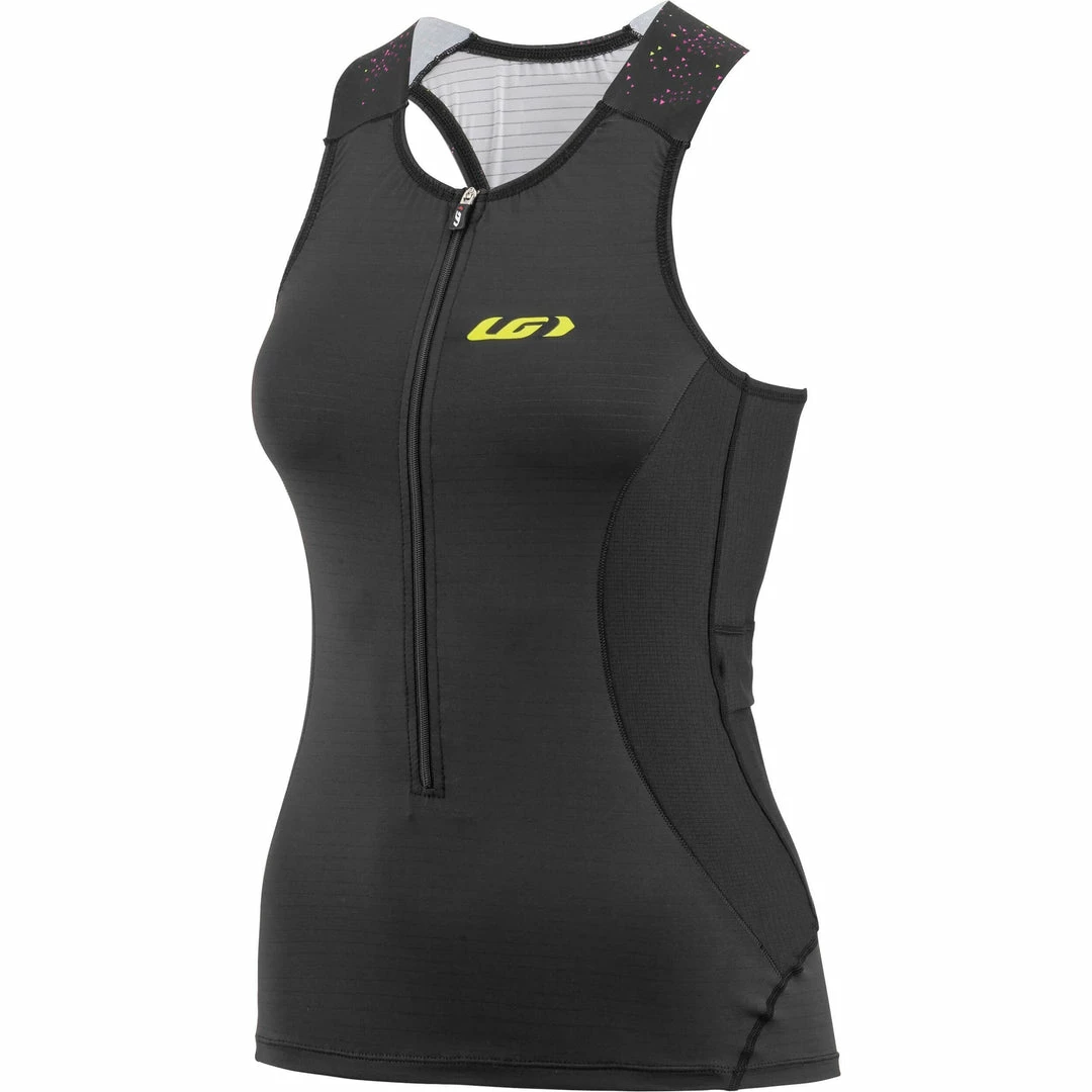 With compression, support and comfort, the Louis Garneau Women’s Pro Carbon Triathlon Top delivers on every count. Compressive fabrics help aid your body’s natural muscle function while you’re working hard, with added support across the shoulders, which are laser-cut for improved aerodynamics. Double back pockets in lightweight mesh offer protection to your essential items, without weighing you down. The tapered cut of the singlet is flattering without pinching at the waist, while the front zip is designed to prevent abrasion on contact with the skin thanks to an internal trim. The use of Micro-Activ and flatlock seams on the shorts eliminates irritation and reduces chafing to keep you comfortable throughout the race. Innovative Coldblack® technology keeps you cool by dispersing heat build-up from the sun’s rays, while front and back reflective accents help improve visibility to keep you safe and seen.