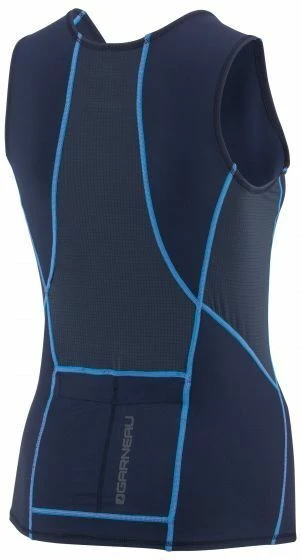 Anyone familiar with the sport knows that when racing or training for a triathlon, every bit of energy is indispensable – it should go where it counts! The Louis Garneau Women’s Tri Comp Sleeveless Triathlon Top now comes in a more inclusive fit than ever, molds to the curves of the body perfectly to provide maximum muscle compression and excellent support to boost circulation and reduce fatigued caused by muscle vibration. Plus, the hydrodynamic properties wonโt slow you down as it reduces drag in the water. The chlorine-resistant fabric will maintain integrity when youโre training in a pool, and tri-specific seams minimize the possibility for chafing.