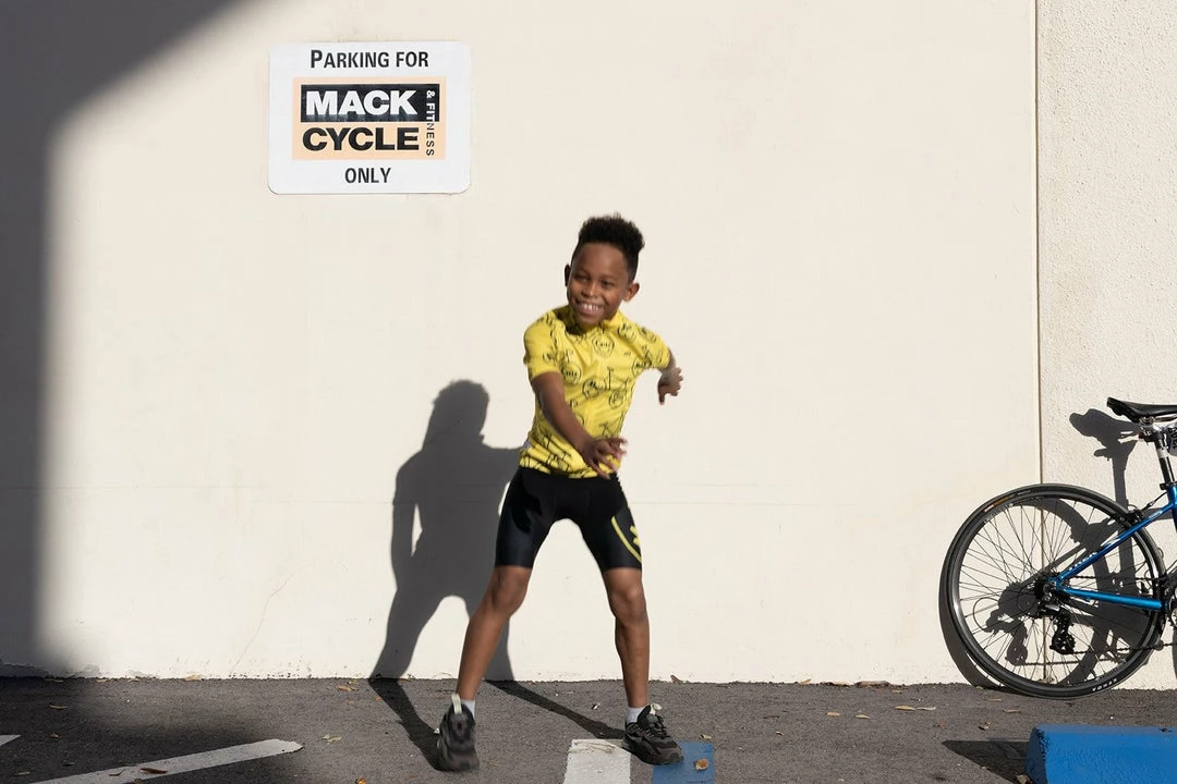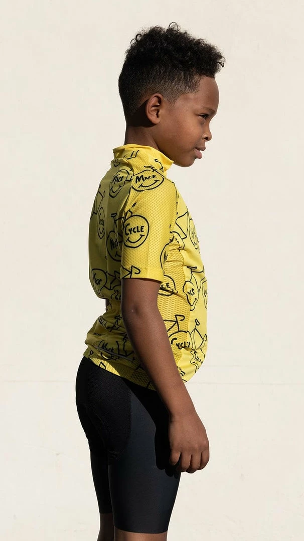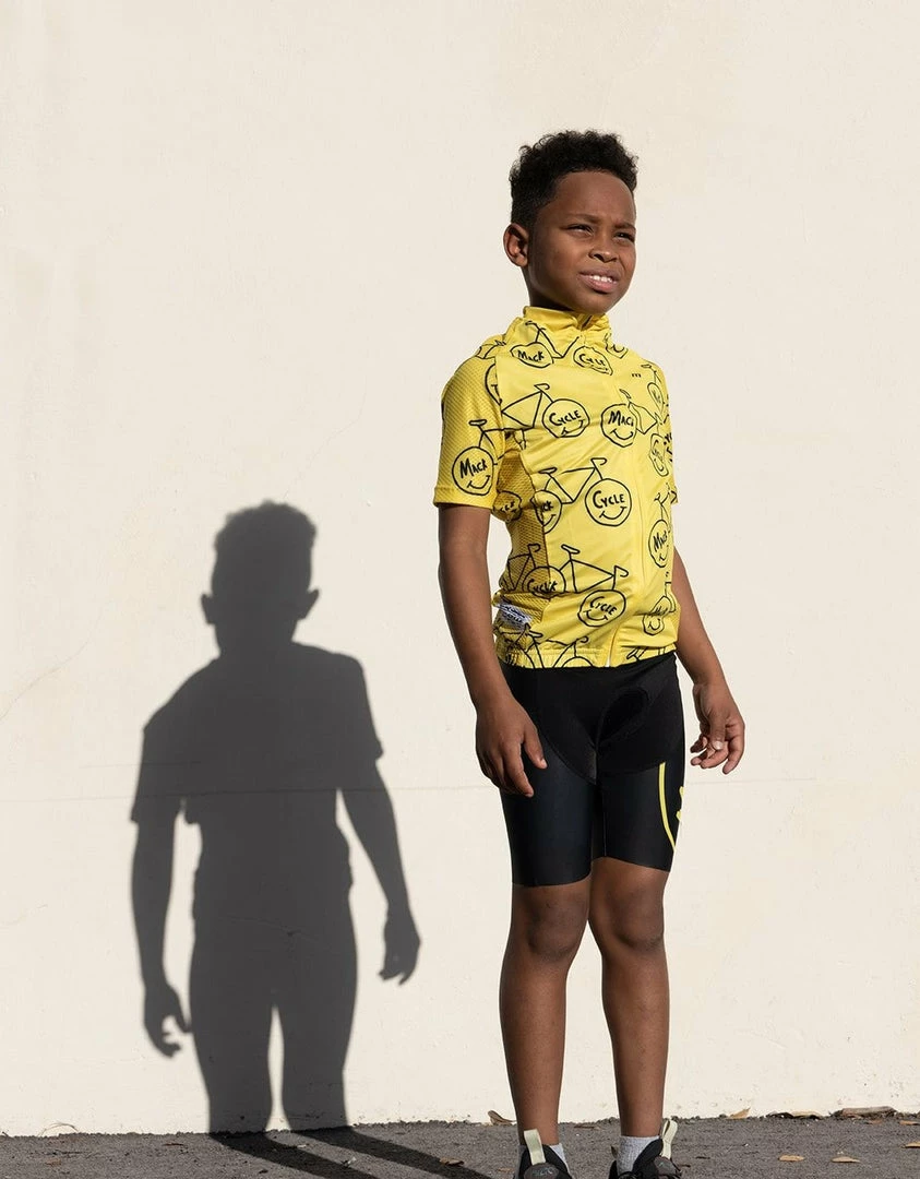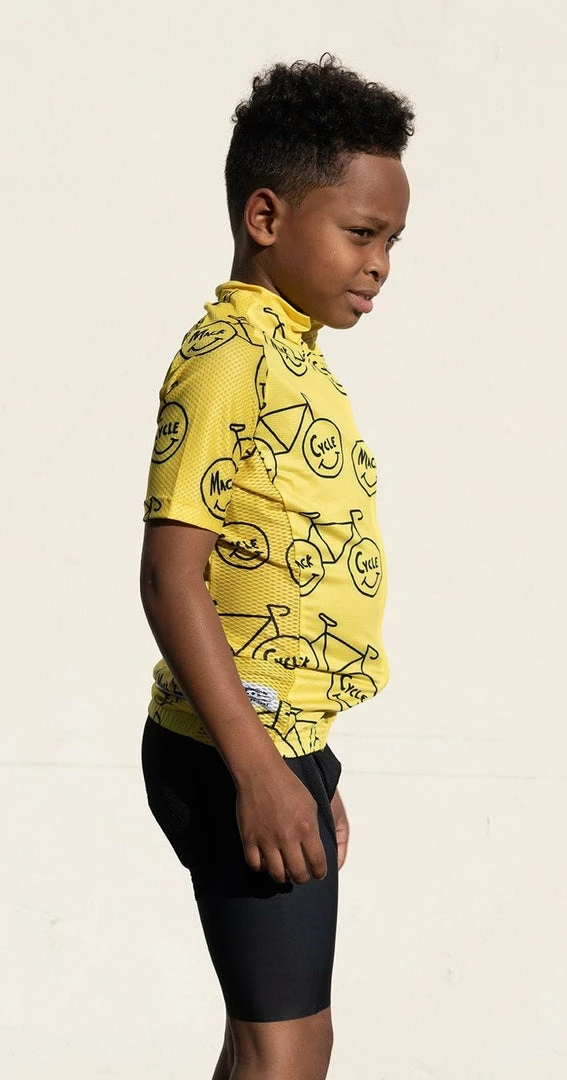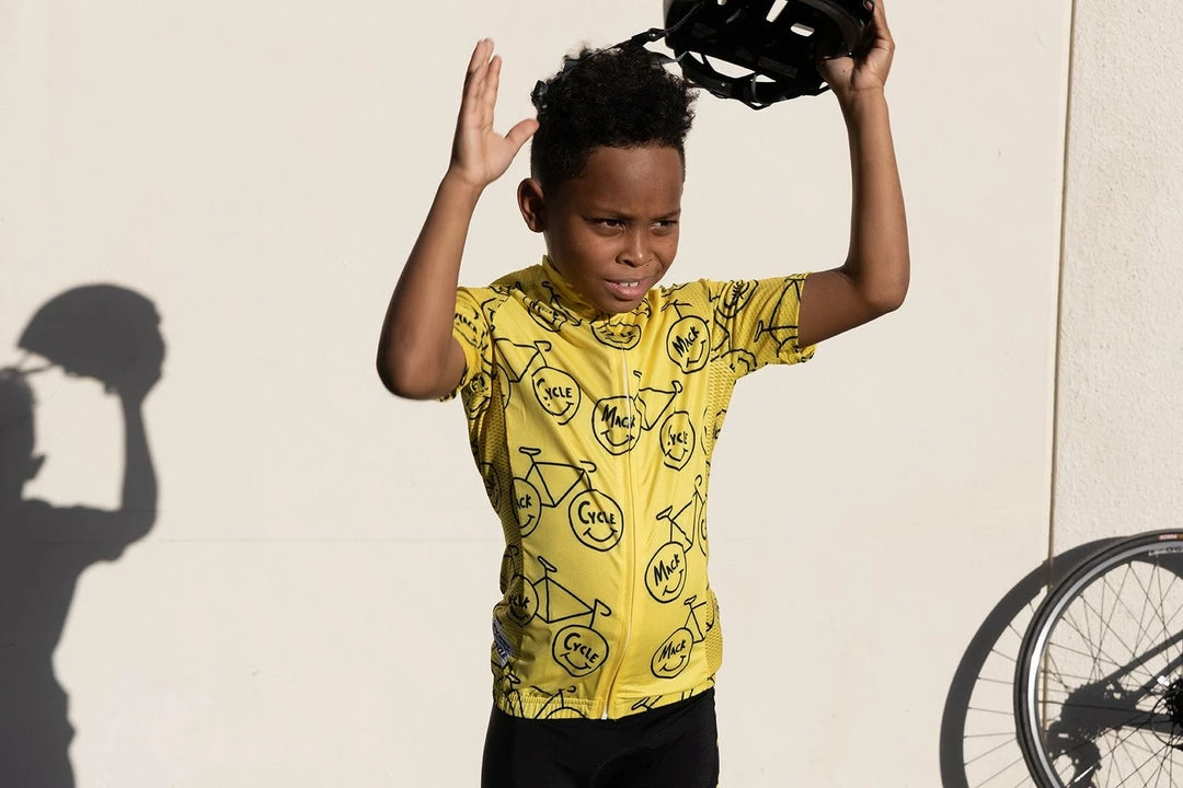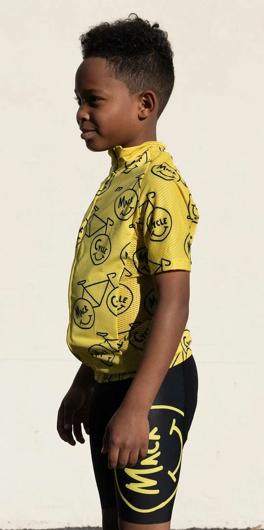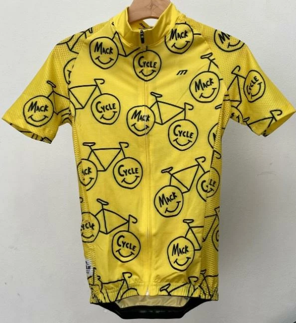 Ride in style with the Mack Cycle Happy Riding Cycling kit.Β This kit includes a full-zip cycling jersey, cycling short, and a comfortable buff to cover your face from the elements when needed.