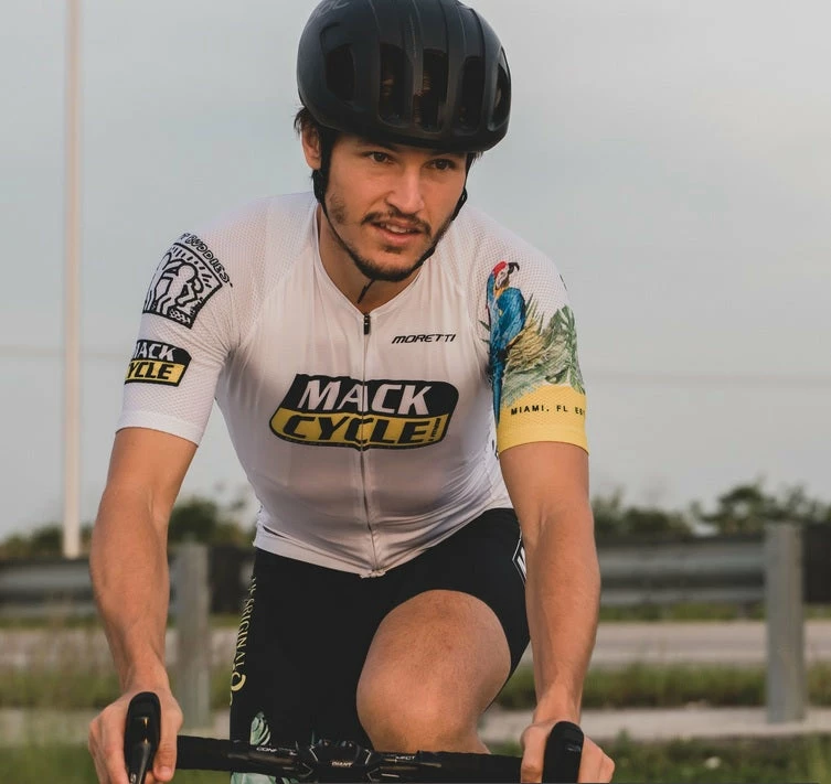 Inspired by Miami’s population of wild parrots and our childhood memories at Parrot Jungle; an iconic Miami attraction. Featuring two brightly colored long-tailed Macaws as suited to our tropical climate as this jersey.Β This is a go-to jersey fabricated for our hot and humid ride conditions. As youΒ head outΒ to ride be free and wild, just like the Macaw.Β