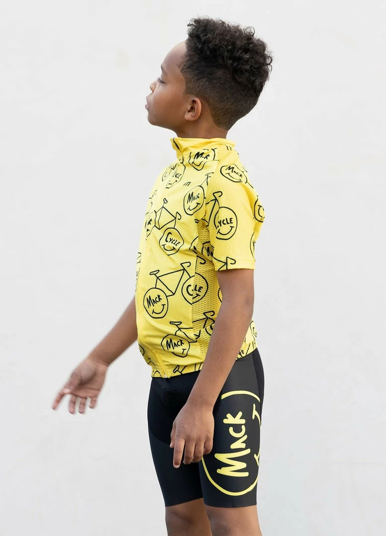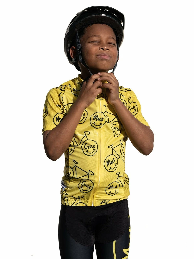 Your pride and joy will be riding with a smile on his or her face when riding with the Mack Cycle Happy Riding Youth Bike Jersey.Β You can’t help but smile when you see your child cruising down the street in this jersey!