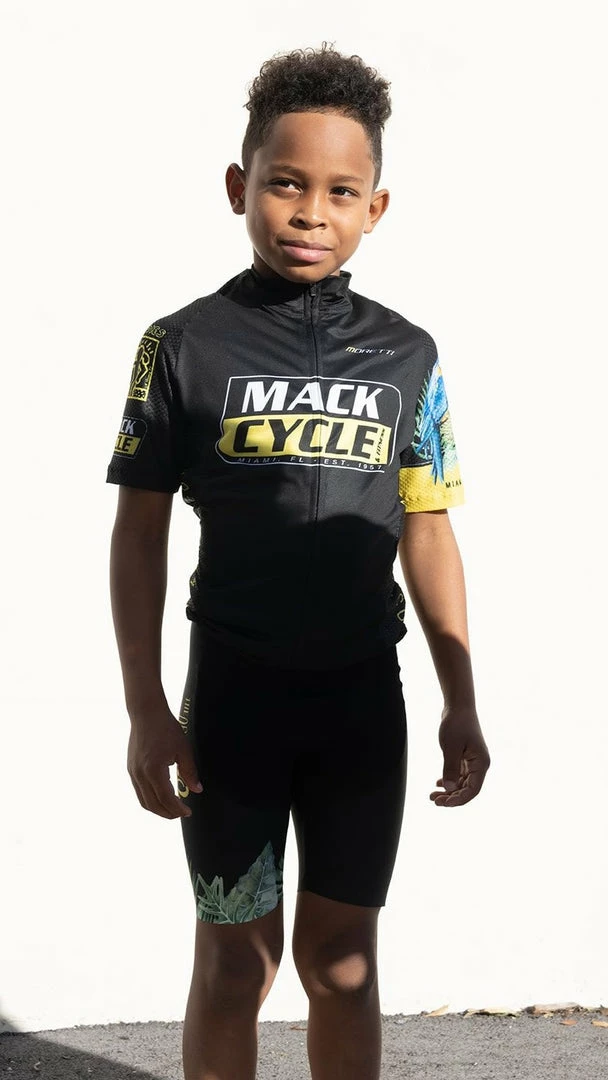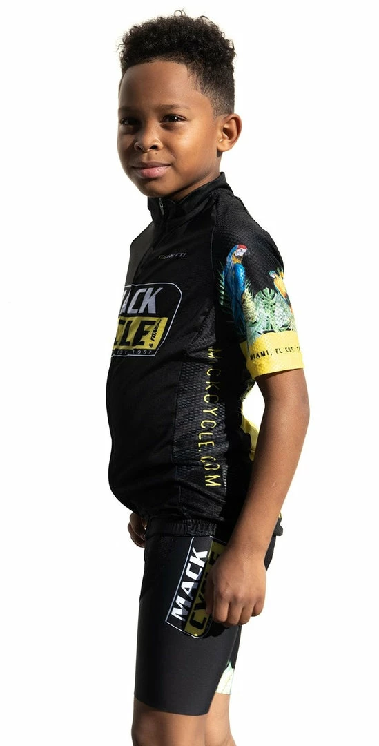 Inspired by Miami’s population of wild parrots and our childhood memories at Parrot Jungle; an iconic Miami attraction. Featuring two brightly colored long-tailed Macaws as suited to our tropical climate.ย This is a go-toย cycling short fabricated for our hot and humid ride conditions.