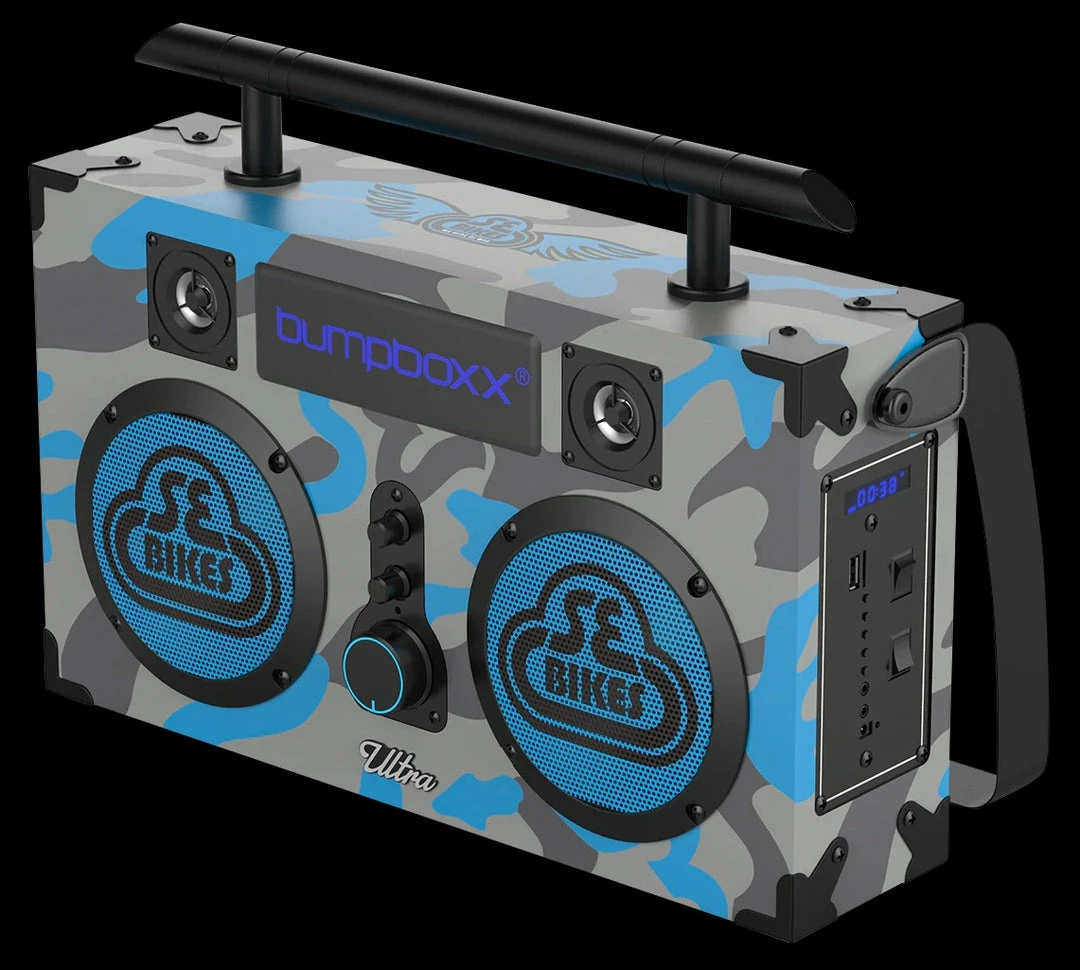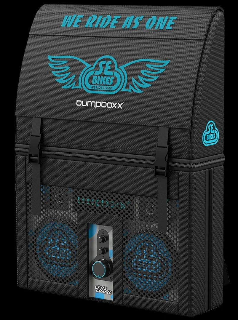 Youβre going to be ready to rock the block with the new SE Bikes Bumpboxx! The SE Bikes Bumpboxx is a super portable model that features a boominβ bass radiator on the backside, and the Bluetooth and USB features make it easy to blast your tunes on the go. And get this: the SE Bikes Bumpboxx comes with an awesome SE backpack with ventilated areas for the speakers so you can crank up the volume while carrying the Bumpboxx on your ride. The backpack has several separate compartments to hold all kinds of other goodies. With this on your back, youβre a mobile music machine!Β