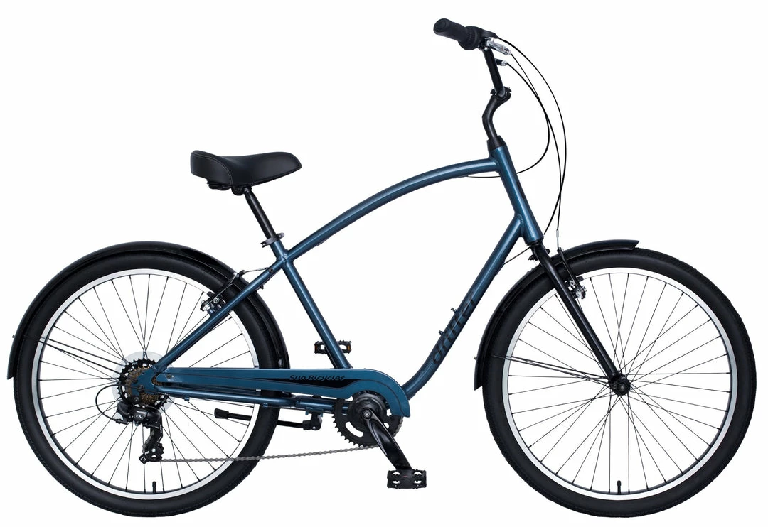 The Sun Drifter 7 Speed Cruiser Bike is the ideal choice for casual rides around the neighborhood, bike path, or wherever your adventure awaits. Sun’s unique Foot Forward pedal placement and easy upright riding position ensure total comfort and stability while on the Sun Drifter 7 Speed. The Foot Forward position allows you to maintain proper saddle height while still having the ability to place your feet on the ground when seated. The Drifter is offered in single-speed, 3-speed internal, 7-speed, and 21-speed versions to accommodate all riders.
