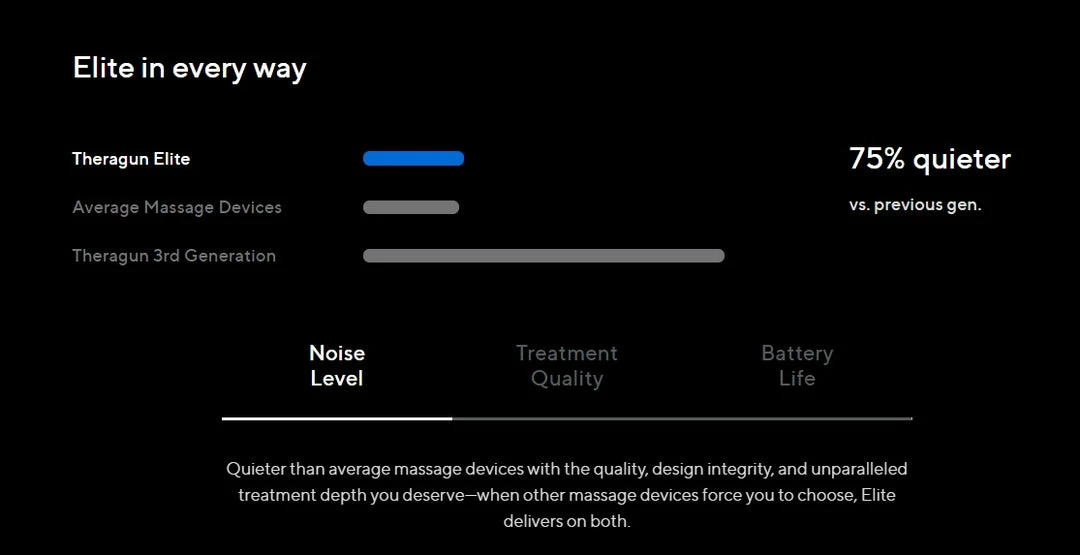The TheraGun Elite Muscle Therapy Device is TheraBody’s powerful deep muscle treatment, in an ultra-quiet smart percussive therapy device with advanced sound insulation. The TheraGun Elite Muscle Therapy Device works deep to melt away tension and release soreness, empowering you to care for your body daily.