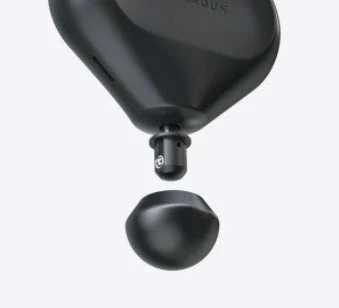 Align the attachment with the tip of the rotating arm and push to connect. To remove, grip the attachment, placing 1 finger on each side of the plastic connector. Pull off the attachment. Your Theragun mini comes with a Standard Ball attachment designed for overall use. It is also compatible with all available attachments, excluding those exclusive to the first-generation Theragun liv.