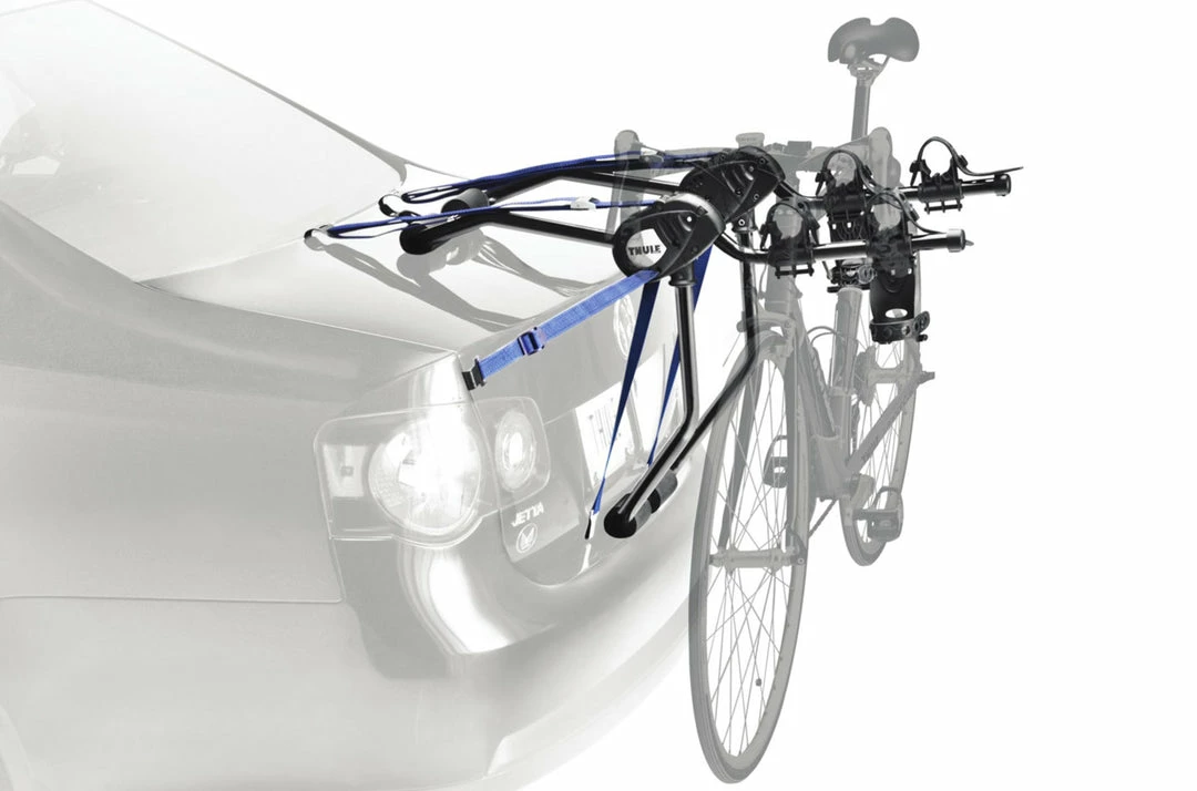 The Thule Passage 2 Bike Rack is a convenient and easy-to-use hanging-style trunk bike rack (for 2 bikes).