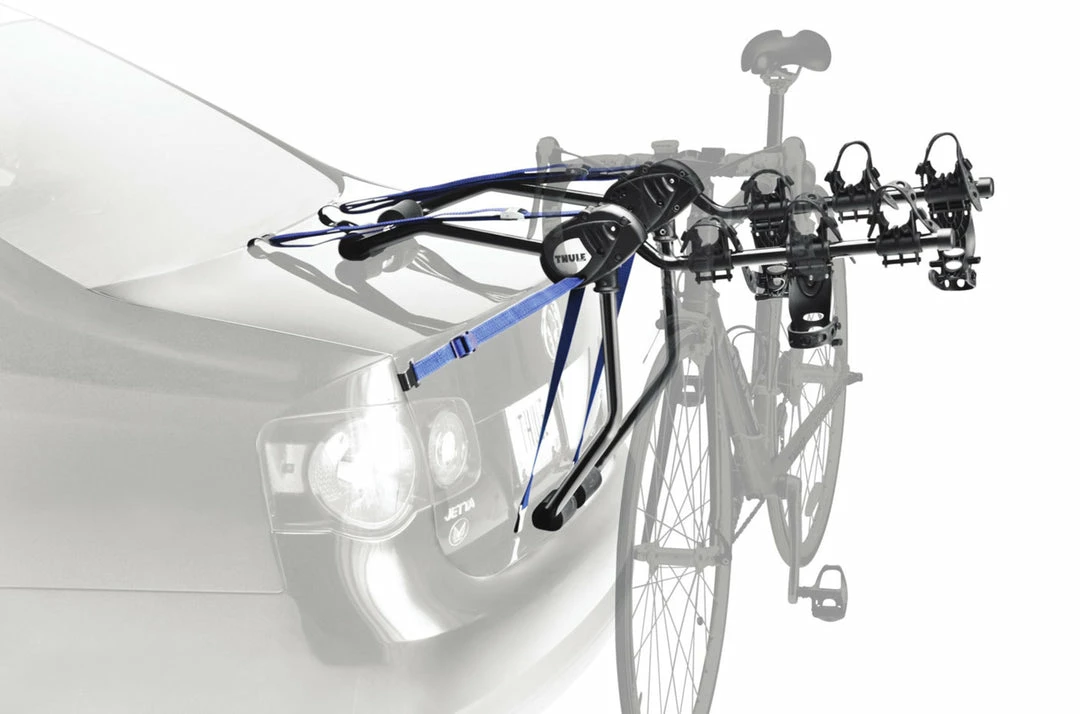 The Thule Passage 3 is a convenient and easy-to-use hanging-style trunk bike rack (for 3 bikes). The Thule Passage 3 functions best when each bike weights 35lbs or less (with a total weight capacity for all 3 bikes of 105 lbs or less).
