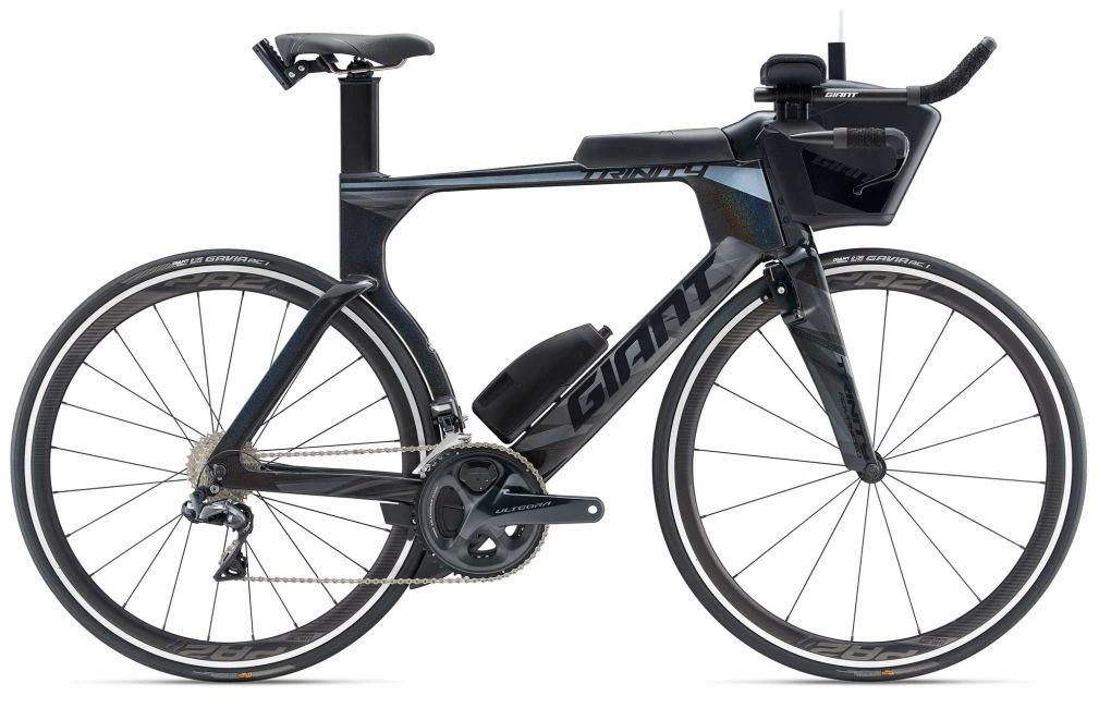 Engineered using Computational Fluid Dynamics and dynamic wind-tunnel testing, the Giant Trinity Advanced Pro 1 Triathlon Bike delivers a proven aerodynamic advantage. Handcrafted from premium Advanced-grade composite and meticulously formed with Giant’s AeroSystem Shaping Technology, it slices through the wind better than any bike in its class. Made for real-world triathlon performance, it offers a comfortable fit for long distance training and racing. And its unique AeroVault system includes an integrated front hydration unit, top tube storage box and downtube water bottle that, together, actually improve the bike’s aero performance on the road.