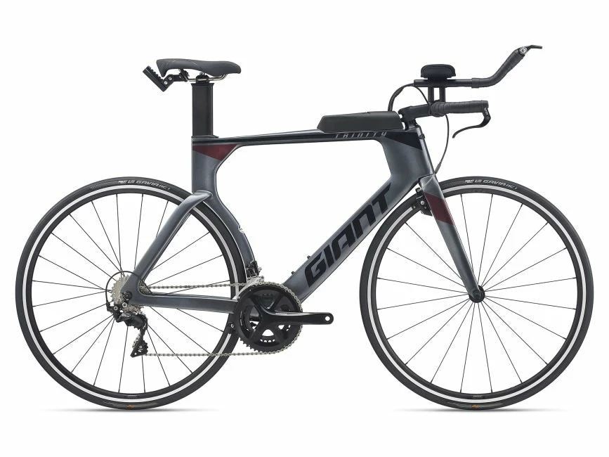 FROM IRONMAN DISTANCE TRIATHLONS TO SHORTER EFFORTS AGAINST THE CLOCK, GIVE YOURSELF A TRUE ADVANTAGE IN SPEED AND AERODYNAMICS. THE GIANT TRINITY ADVANCED TRIATHLON BIKE IS A SUPER-EFFICIENT COMPOSITE MACHINE THAT GIVES YOU EVERYTHING YOU NEED TO CHASE A NEW PR.